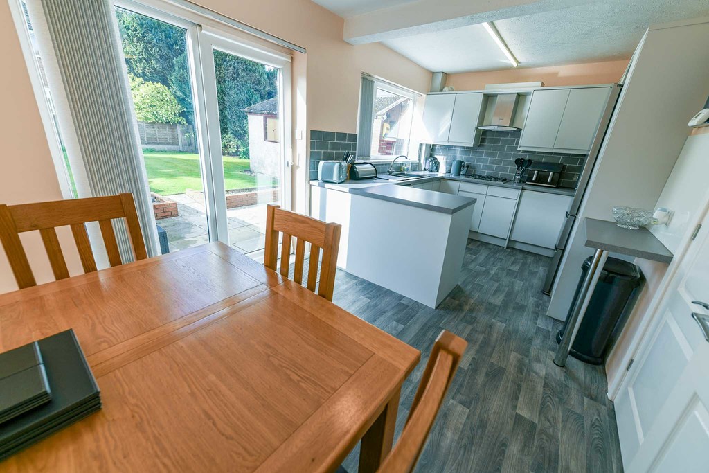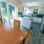 Double wooden-panel doors lead seamlessly through to the kitchen/diner, enhancing the sense of space and providing a flexible open-plan layout ideal for both everyday living and entertaining.