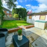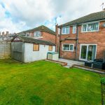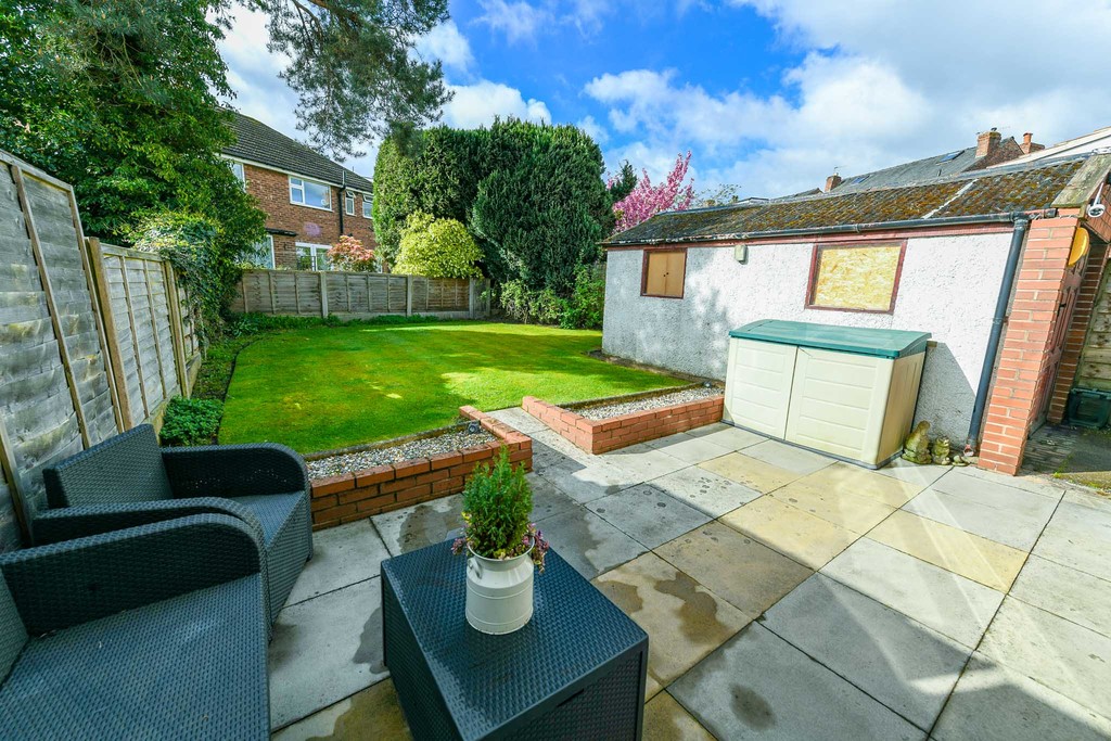 The generous south-facing rear garden features a paved patio area adjacent to the house, leading onto a large laid-to-lawn area bordered by well-stocked flower beds and mature hedging. The garden is enclosed on three sides by timber fence panels, offering a good degree of privacy. There is also CCTV to the front, rear and side of the property.