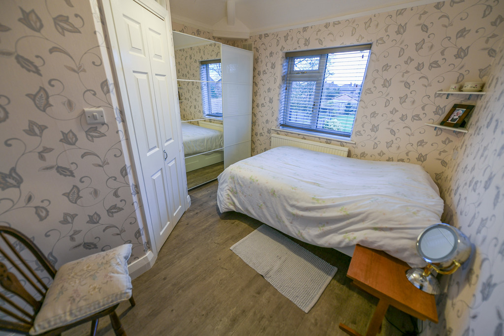 BEDROOM FOUR 12' 2" x 8' 6" (3.72m x 2.60m) Bedroom Four, located at the front of the property, features a front-aspect uPVC double-glazed window, carpet flooring, a double-panel radiator, and a pendant light fitting. The room also benefits from built-in furniture, including wardrobes, an over-bed cabinet, and a dressing table.