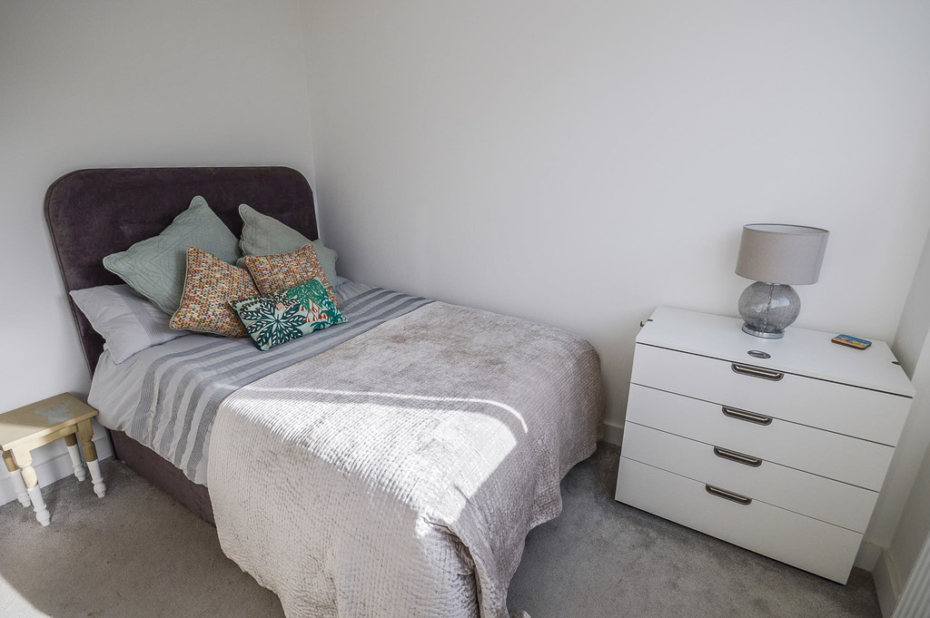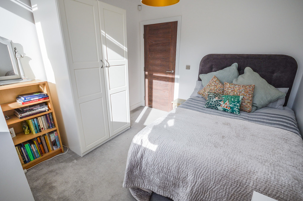BEDROOM 10' 11" x 9' 3" (3.34m x 2.84m) The bedroom is good sized double bedroom allowing ample room for a double bed, bedside tables and a wardrobe. This room is fitted with carpeted flooring; a pendant light fitting; a single panel radiator; a television point and large double glazed windows spanning cross the rear wall, fitted with horizontal blinds.
