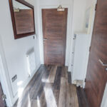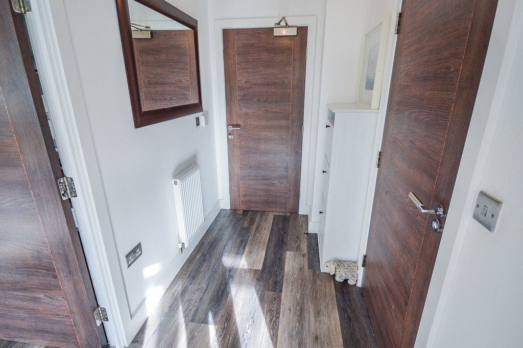 ENTRANCE HALL 8' 9" x 4' 5" (2.68m x 1.35m) The entrance hall is fitted with wood effect laminate flooring; a pendant light fitting; a single panel radiator; and control panel for security alarm with motion detectors in each room. The intercom for access to the building is managed via a mobile app.