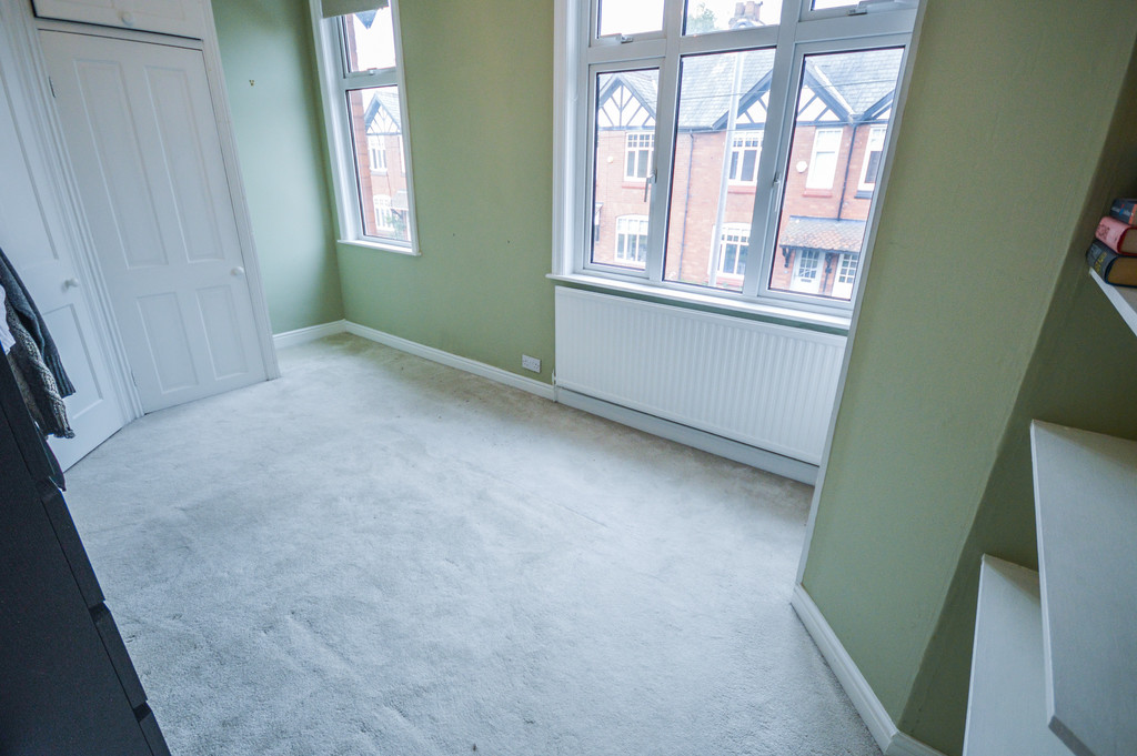 BEDTROOM TWO 12' 7" x 9' 4" (3.86m x 2.87m) The second double bedroom is located off the first floor landing with two uPVC double-glazed windows to the front aspect, fitted with roller blinds; carpeted flooring; two built-in storage cupboards and wall-mounted shelving; a pendant light fitting; a single panel radiator and a wooden panelled door allowing access to the en suite shower room.