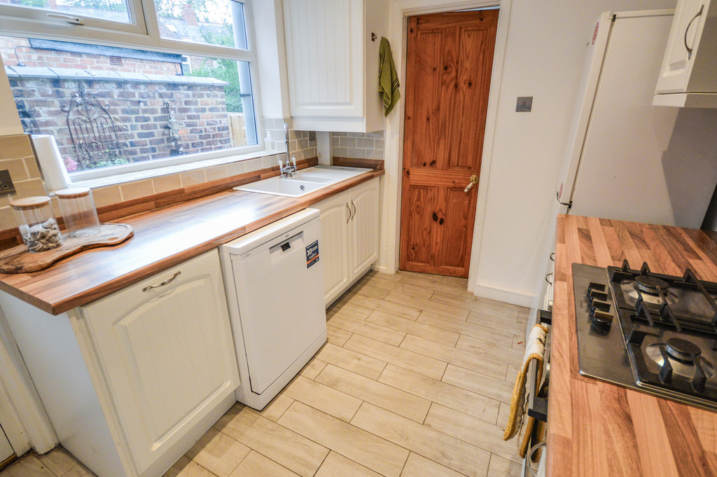 KITCHEN 10' 9" x 8' 1" (3.30m x 2.47m) The kitchen is reached via the dining room and allows access to the rear garden via a uPVC double-glazed door to the side aspect and to the utility room and downstairs WC beyond via a wooden panelled door. The kitchen is fitted with a range of matching base and eye-level storage units; with wood effect laminate worktops over; tiled flooring; tiled splashback; an integrated oven with four ring gas hob and stainless steel extractor hood over; space and plumbing for a dishwasher and fridge-freezer and a wall-mounted combi boiler. This room also offers recessed spotlighting and a uPVC double-glazed window to the side aspect.
