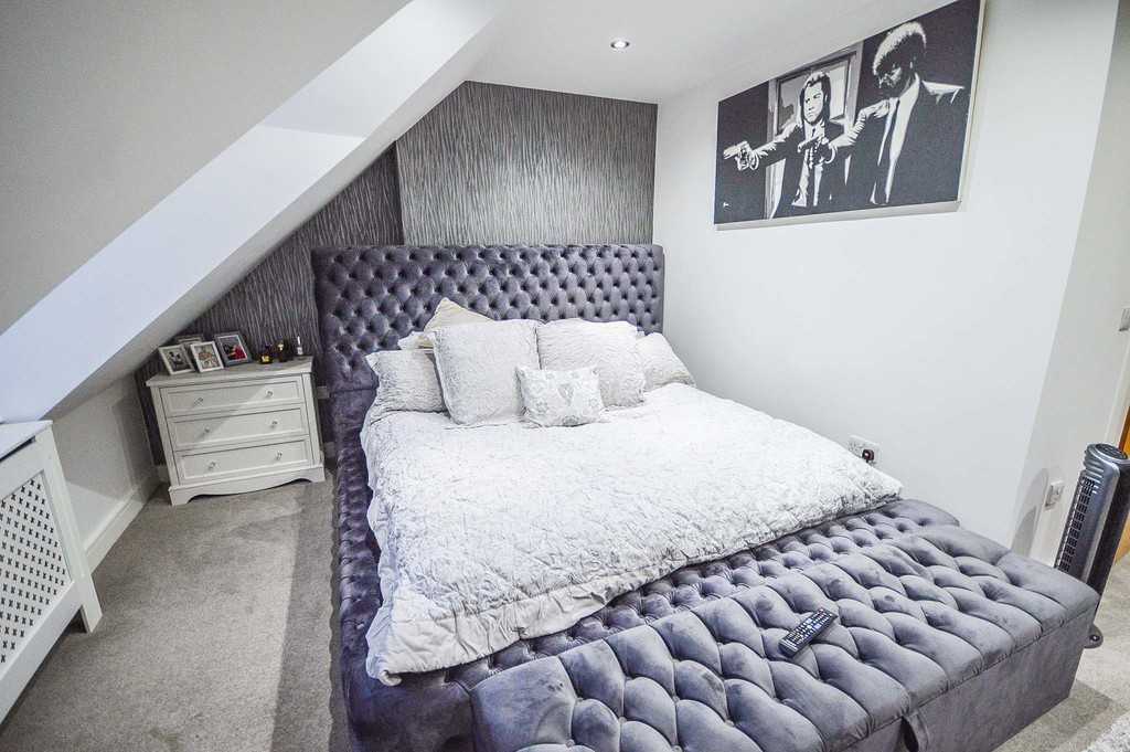 MASTER BEDROOM 16' 9" x 16' 1" (5.11m x 4.91m) The master bedroom is a spacious double bedroom with en suite shower room. This room offers carpeted flooring; recessed spot lighting; a double glazed sash window with vertical fitted blind; a wall mounted electric heater behind a decorative radiator cover; television point; wall mounted mirror fronted electric fire and ample room for a double bed; bedside tables; chest of draws and wardrobe.
