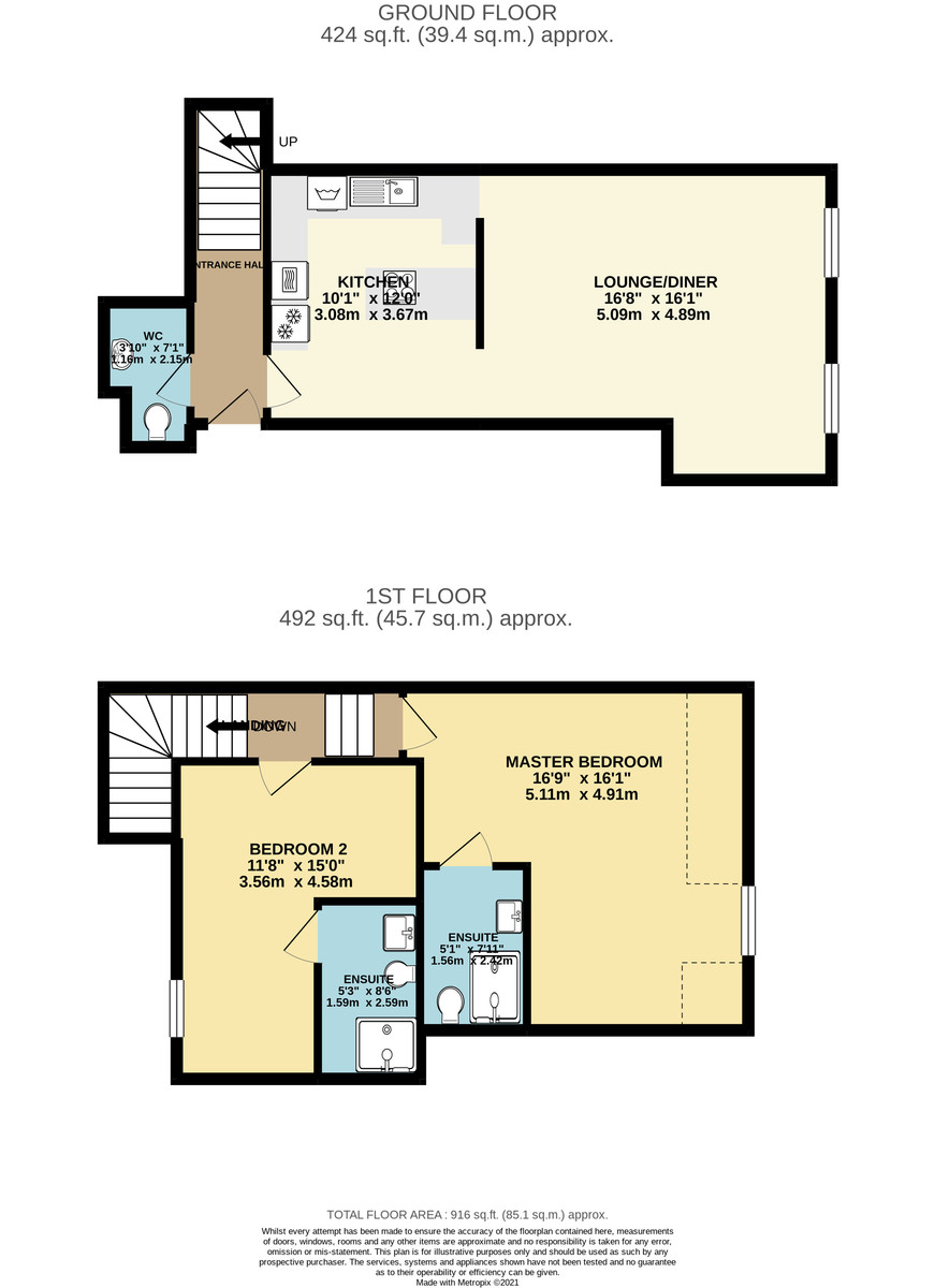 ENSUITE SHOWER ROOM 2 5' 2" x 8' 5" (1.59m x 2.59m) Accessed via the second bedroom is another en suite shower room. This room offers laminate wood effect flooring; part tiled walls; wall mounted hand wash basin with storage under and mirror over; low-level WC; wall mounted heated towel rail, ceiling mounted light fitting; extractor fan and a walk in shower cubicle with glazed screen and chrome thermostatic shower system.