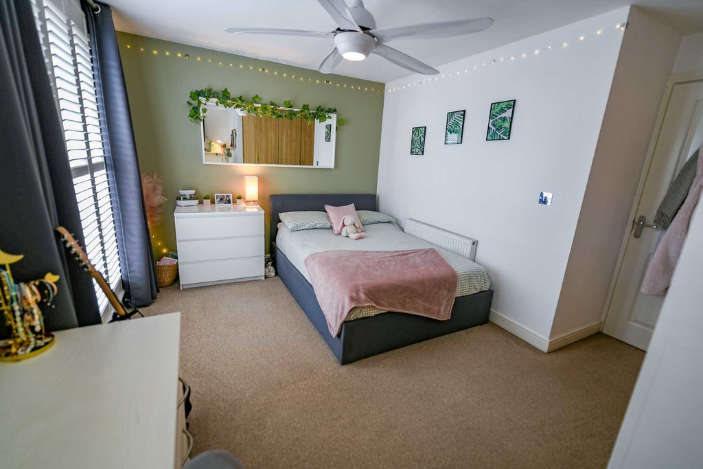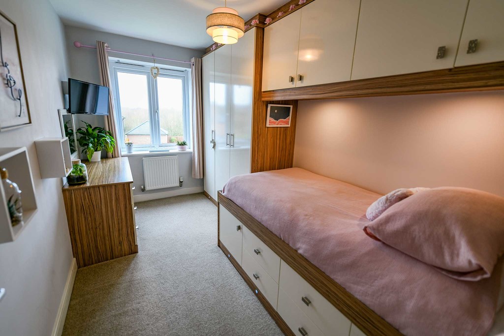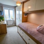 BEDROOM FOUR 12' 5" x 6' 11" (3.79m x 2.11m) The fourth bedroom is currently utilised as a single bedroom with a double-glazed window to the rear aspect. This bedroom is fitted with a range of matching wardrobes, over-bed and under-bed storage and a built-in chest of drawers. The room also offers a pendant light fitting; carpeted flooring; a television point and a single panel radiator.